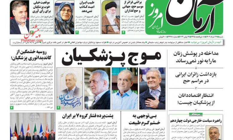 عناوین اخبار روزنامه آرمان امروز در روز شنبه ۲۶ خرداد