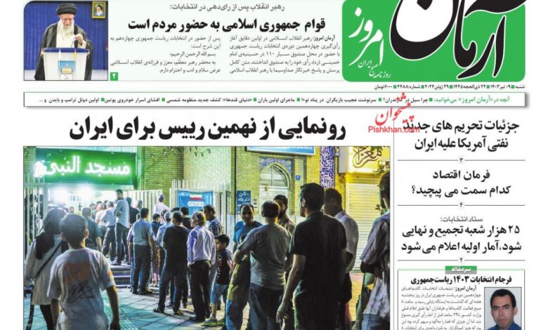 عناوین اخبار روزنامه آرمان امروز در روز شنبه ۹ تیر