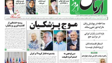 صفحه نخست روزنامه ۲ تیر ۱۴۰۳